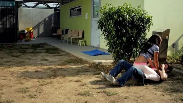 Luego tenemos una escena sexy de Alice Hunter tratando de ayudar a un chico a poner celosa a otra chica. Ella se sienta a horcajadas sobre él en el suelo junto a un edificio y balancea sus caderas mientras gime y grita. Luego demuestra diferentes estilos de orgasmos mientras fingen tener sexo.