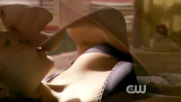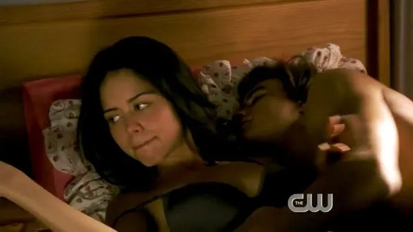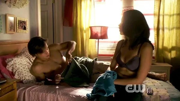 Después del desnudo, tenemos una gran escena de sexo con Alyssa Diaz. Ella se está besando con un chico en una cama al principio con un top azul. Luego con un sostén gris y que él comenzara a bajarle la tira del sostén. Su teléfono suena, se sienta en la cama y se vuelve a poner la camisa.