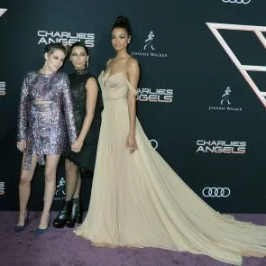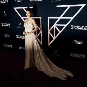 Y ahora damas y caballeros, para el final ... ¡Tengo algunas fotos que nos muestran lo sexy que es la señorita Ella Balinska! ¡Llevaba un vestido largo dorado que tiene el escote más grande que jamás haya visto! Esto fue en el estreno de 'Los ángeles de Charlie' de Columbia Pictures en el Westwood Regency Theatre de Los Ángeles. ¡Su figura se ve genial y sus tetas son demasiado jugosas para resistirse! ¡Sigue desplazándote hacia abajo y disfruta!