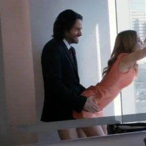 Hay escena de sexo de la película 'Half Magic' , donde puedes ver la actriz rubia caliente Heather Graham de pie con las manos en la ventana de la oficina, mientras chico caliente se la folla por detrás con las manos en las caderas, Heather lleva un vestido rosa y no disfruta de este sexo tanto como él. Revisa Heather Graham desnuda escena de sexo de 'Half Magic' y escena de arbusto desnudo .