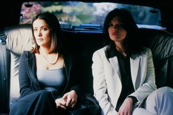 Para todos los fanáticos de Salma Hayek, que también aman a Jeanne, tenemos la escena épica en la que estas dos chicas se besan en el asiento trasero del auto. Salma mostró el escote, mientras que Tripplehorn se viste profesionalmente, ¡lamentablemente! ¡Se acercan y empiezan a besarse apasionadamente! Te acuerdas Salma Hayek filtró video sexual ?