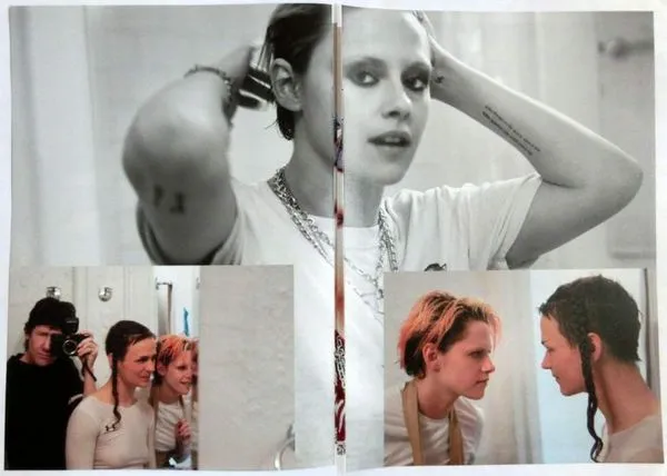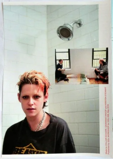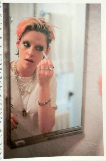 Famosa actriz lesbiana Kristen Stewart desnuda fotos ¡están aquí! ¡Esta sexy descuidada hizo una sesión de fotos con Collsea y mostró sus pequeñas tetas hinchadas una vez más! Posó en topless en el baño, vestía jeans y chaqueta de mezclilla, luego se mostró debajo de las tetas con un top blanco. Su cabello estaba teñido de rosa y rubio, ¿por qué mujer?