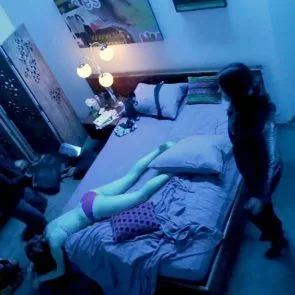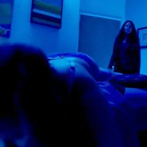 Y para el final ... Tenemos una escena de una película llamada “Escándalo”. Mary Mouser está boca abajo muy borracha. Está en su cama con un sostén con estampado animal y unas diminutas bragas rosas. Las bragas lucen su culo mientras una mujer se arrodilla para cuidarla mientras la otra mujer hace una llamada telefónica para pedirle ayuda.