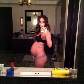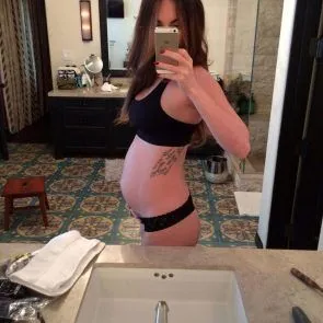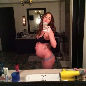 Ah, y lo curioso es que parece que Megan está tratando de usar su embarazo como truco publicitario. Ella piensa que nadie está interesado en su cuerpo sexy más que los fanáticos del fetiche prego. E incluso podría tener razón en eso.